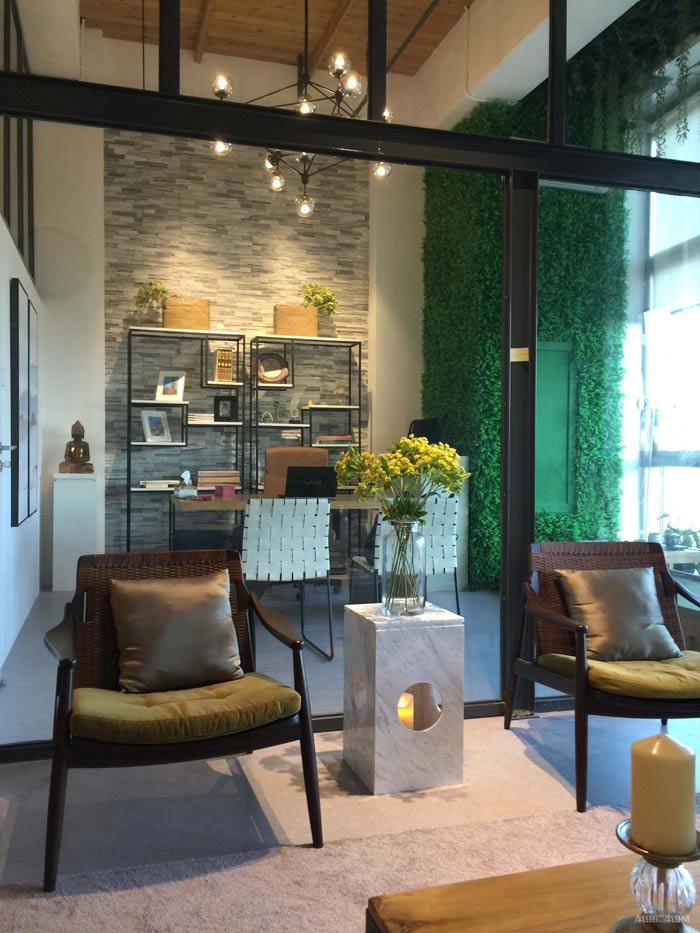 實例一:loft辦公空間設計包括:形象墻、茶水間、接待區(qū)域、辦公區(qū)域,在小空間中劃分出如此多的區(qū)域,對于設計師來說也有一定的難度,設計師采用將硬裝與軟裝相結(jié)合的方式,合理的劃分出各個功能區(qū)域。辦公區(qū)域的設計,設計師合理的利用了硬裝的設計,在加上軟裝椅子的配合,真是天作之合,墻壁上的擺放區(qū)域也是一大亮點。俯視整個辦公區(qū)域,一樓只要為辦公區(qū)域,二樓只有為總經(jīng)理辦公室區(qū)域,空間在設計師的手中好似活下來一般,各個空間之間的配合也是恰如其分。
